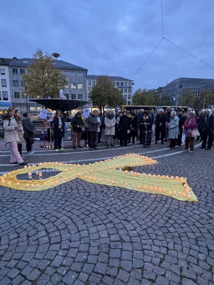 heavy with sorrow, thinking of the women, men and children in Israel who were murdered by Hamas a month ago, the hostages which where abducted to Gaza and all civilians who are suffering and who are killed in the war which was provoked by the terrorist attack of Hamas.