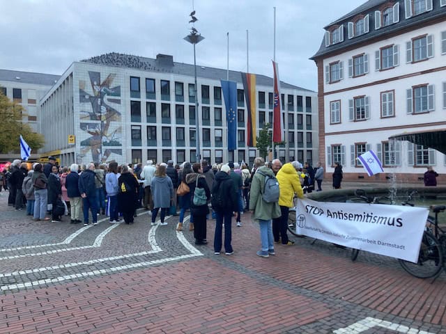 Die Gesellschaft für Christlich-Jüdische Zusammenarbeit Darmstadt, das Evangelische Dekanat Darmstadt und der Katholische Pastoralraum Darmstadt-Mitte hatten zu der Gedenkveranstaltung gemeinsam eingeladen, in Kooperation mit der Jüdischen Gemeinde Darmstadt, der Deutsch-Israelischen Gesellschaft AG Darmstadt und der Wissenschaftsstadt Darmstadt. Mehr als 200 Menschen waren am frühen Abend gekommen.