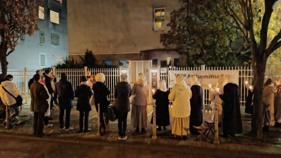Rund 50 Menschen sind diesem Aufruf gefolgt. Nach dem Verlesen der Verlautbarung des Deuschen Koordinierungsrates, dem Dachverband der Gesellschaften für christlich-jüdische Zusammenarbeit einem Impuls zum Schweigen erklang eines der zentralen Lieder der jüdischen Gemeinde zum Chanukkafest: Maoz Tzur.